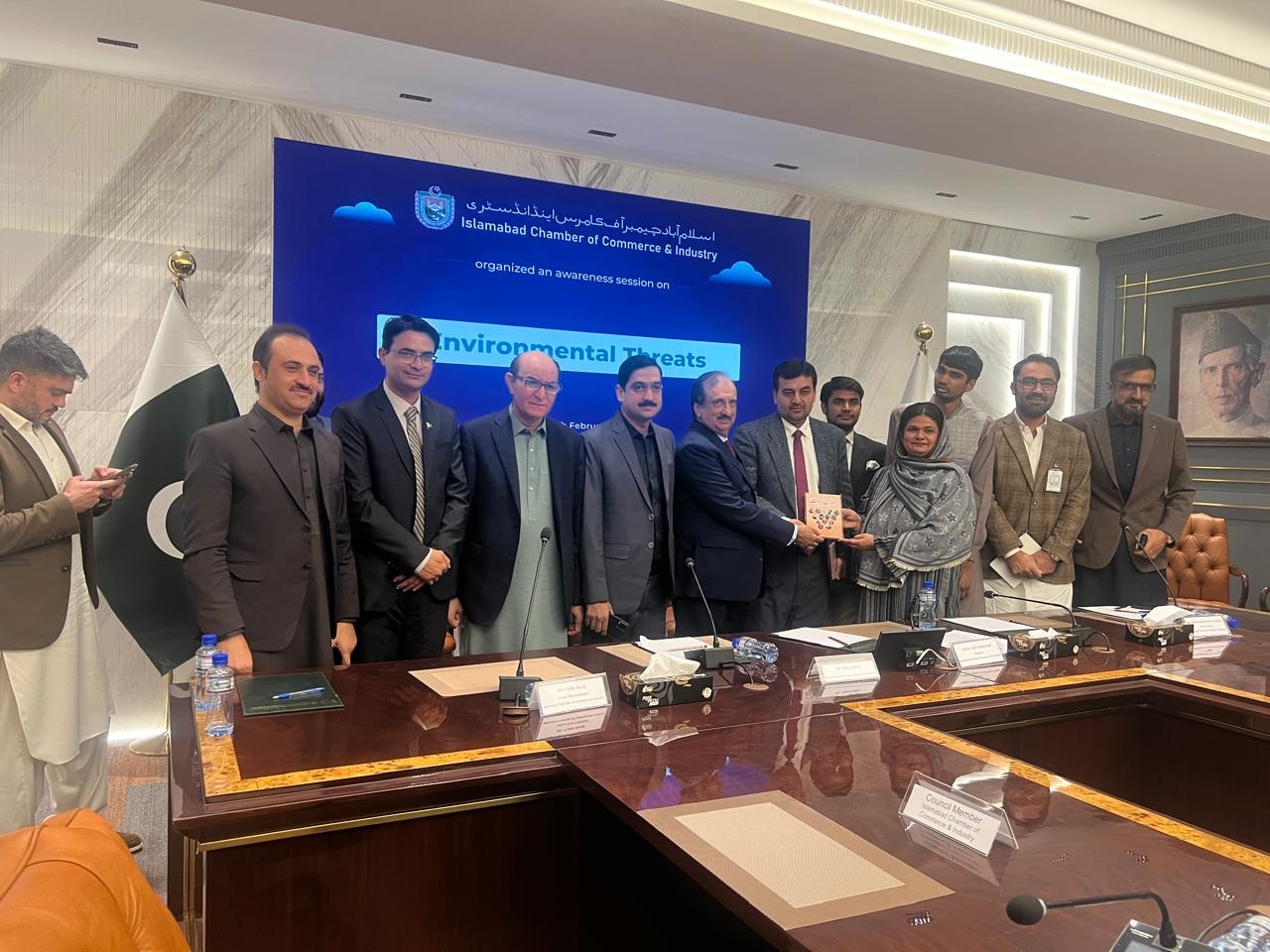 آج بروز جمعہ 13 فروری 2026 کو اسلام آباد چیمبر آف کامرس اینڈ انڈسٹری میں ماحولیاتی خطرات کے موضوع پر ایک اہم کانفرنس منعقد ہوئی۔ مہمانِ خصوصی جناب مسعود احمد خان تھے جبکہ مختلف شعبہ ہائے زندگی سے تعلق رکھنے والی نمایاں شخصیات نے شرکت کی۔ مکمل پاکستان پارٹی کے چیئرمین محمد عبدالمبین ہاشمی نے اپنے خطاب میں کہا کہ موسمیاتی تبدیلی، شدید گرمی، بے وقت بارشیں، سیلاب اور اسموگ دراصل درختوں کی بے دریغ کٹائی، صنعتی آلودگی اور پلاسٹک...